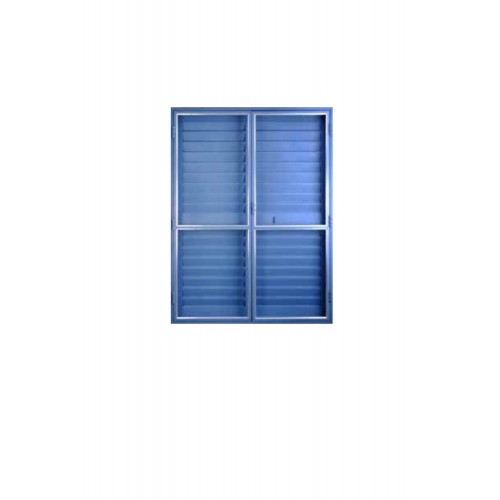 Hojas de acero tubular. Portavidrio de aluminio. Celosías con bisagra munición. Pintura acrílica horneada con tratamiento anticorrosivo. Falleba embutida. Reja de hierro Nº 12 pasante sobre el marco (opcional). No incluye vidrio.